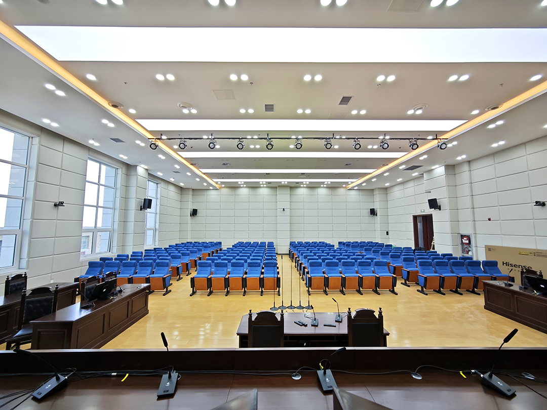 本次兰州市西固区人民法院工程项目为1个报告厅与2个中层会议室,主要用于法院各类会议。需要实现信息数字化、设备全自动化和智能化控制,打造一个高效率、多功能、全方位的报告厅与会议室。