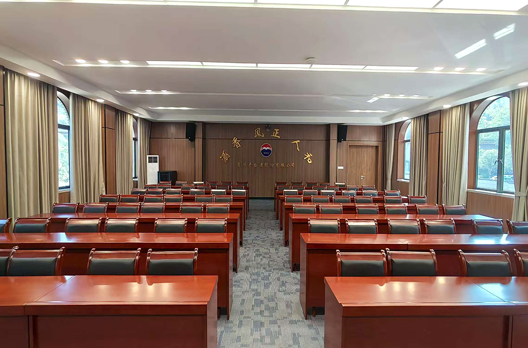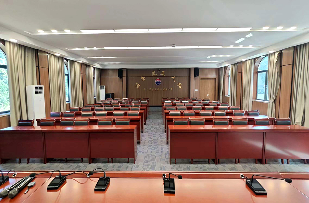本项目为贵州茅台酒厂各大小会议室新建音视频系统,以满足公司日常会议、培训及视频会议需求。要求扩声音箱声音还原度好,系统能满足多人同时发言,进一步提升公司工作会议效率与视听感受。